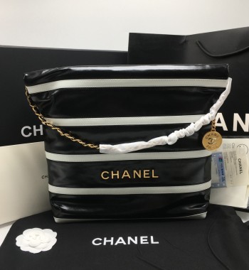 샤넬 24SS 로고 스트라이프 레더 가죽 22백 검수사진