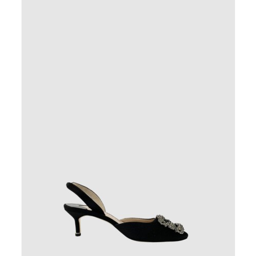 • 마놀로블라닉 새틴 주얼 버클 뮬