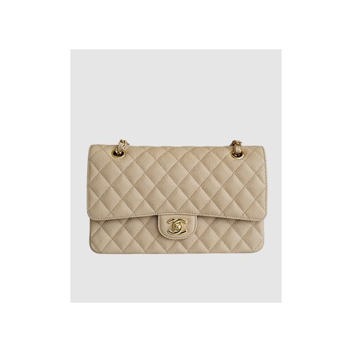 • 샤넬 클래식 미듐 베이지 금장 캐비어