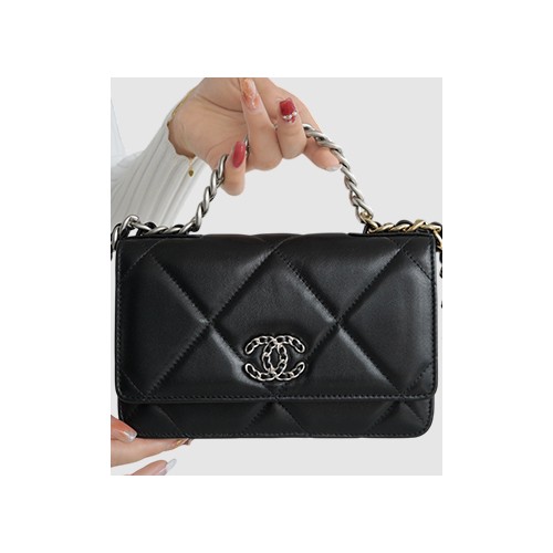 • 샤넬 19 WOC 턴락 램스킨 블랙 은장