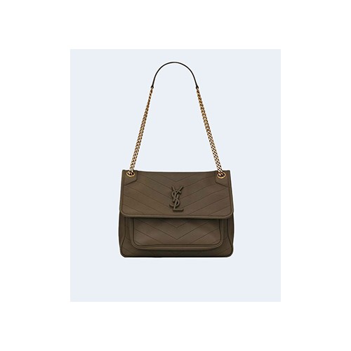 생로랑 니키 스웨이드 미디움 체인백 카키 > 여자 | 루시드