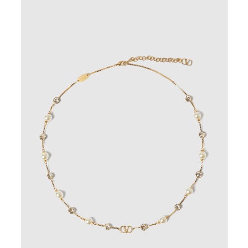 발렌티노 크리스털 장식 브이로고 시그니처 메탈 네크리스 > 여자 | 루시드