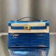 • 에르메스 켈리 포쉐트 블루 금장 샤이니 악어가죽