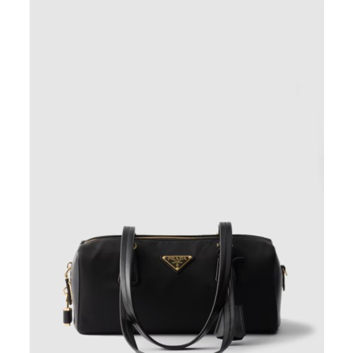 • 프라다 자물쇠가 있는 미디엄 리나일론 및 가죽 탑 핸들백 1BB132